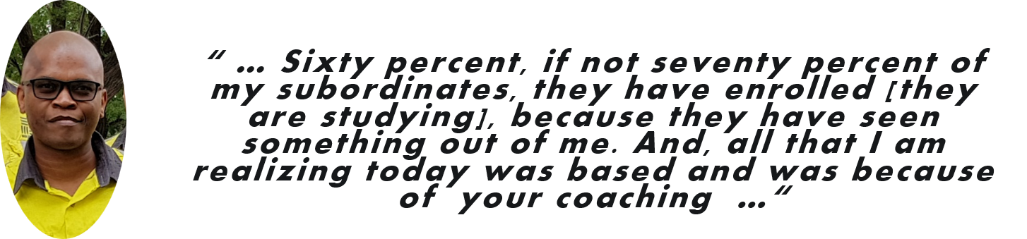 The coaching was an eye-opener for me and helped me not just in my career but also in my personal space. There are so many challenges that one goes through at work which are more influenced by personal issues than work issues. The coaching helped me in dealing with deeper issues that I didn’t even know could affect my career so much. Through the coaching, I have managed to build so much confidence and I now believe in myself and capabilities even more. I love your patience and caring character. I could really tell that you’re in to make a change in people’s lives. Thank you so much and continue doing the amazing work.